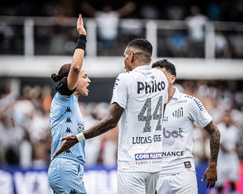 Durante o clássico contra o Corinthians, a árbitra Edina Alves Batista, registrou em súmula que um torcedor do Santos atirou…