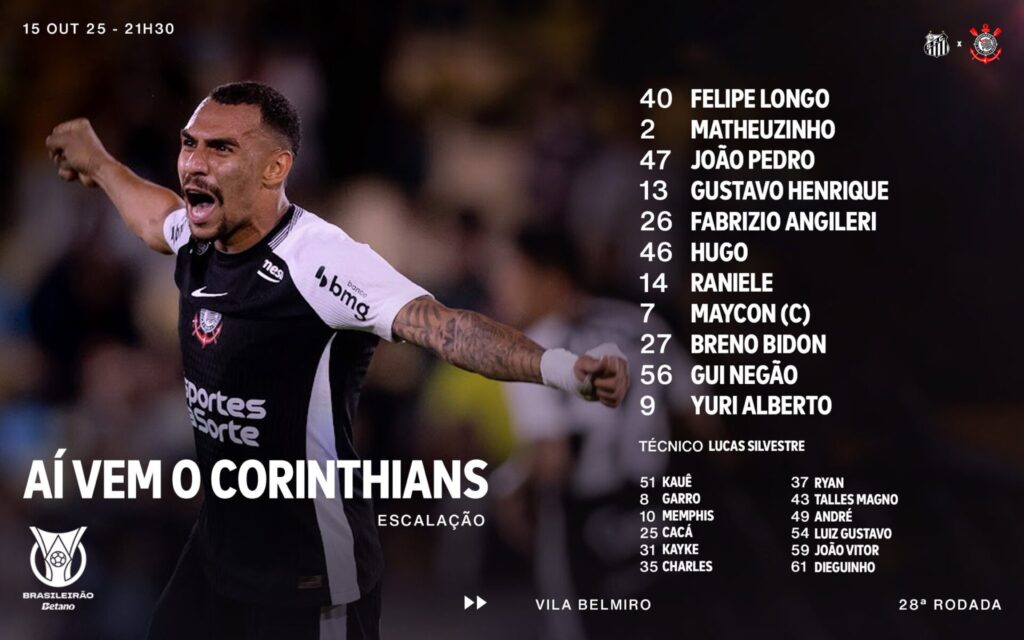 Hoje tem clássico na Vila entre Santos x Corinthians logo mais, às 21h30, pela 28ª rodada do Campeonato Brasileiro. Veja o possível time que Vojvoda entra a campo.