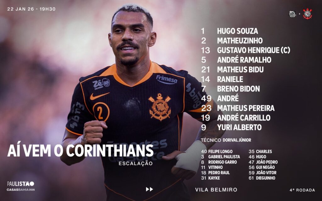 TEM NOVIDADE! Confira os times de Santos FC e Corinthians para o clássico