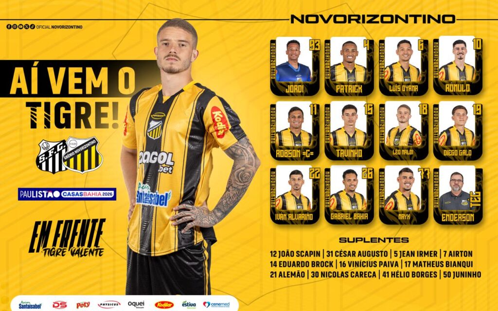 Provável escalação do Novorizontino para enfrentar o Santos FC