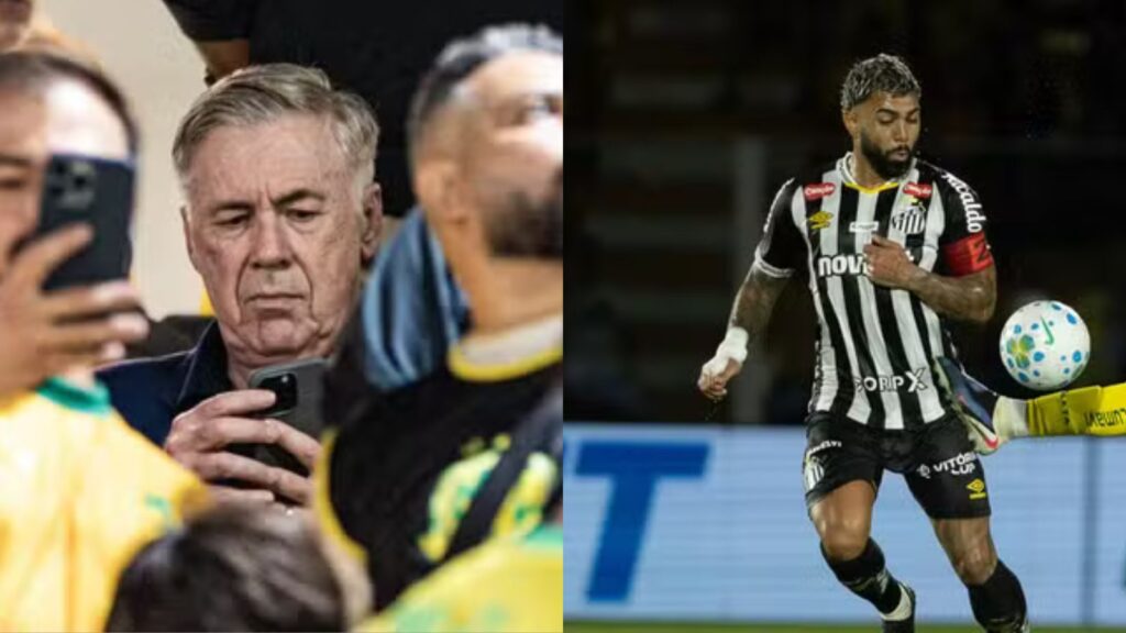 Apesar da ausência do camisa 10, Ancelotti acompanhou uma partida movimentada. O treinador assistiu a quatro gols e viu Gabigol se destacar com a camisa do Santos.